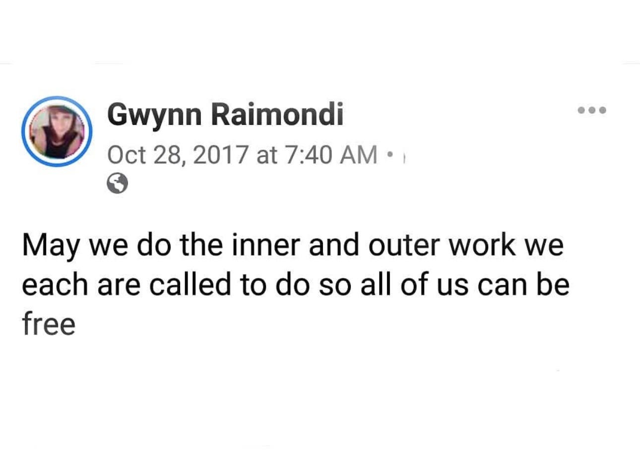 Ancestral Healing & Journeying Work - (Re)Connecting to who we were before whiteness. Individual sessions to find reconnection with your ancesters, healing ancestral curses/processing ancestral trauma, and nourishing our ancestral strength and wisdom. If this kind of work interests you, I invite you to reach out so we can set up a 30-minute free consultation to discuss what this work could look like for you by emailing me at raimondi dot gwynn at gmail dot com with “Ancestral Connection Inquiry” in the subject line. You can also learn more here.